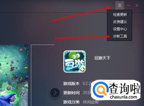 进入详情页后我们点击右上角的菜单图标打开菜单,选择“诊断工具”。