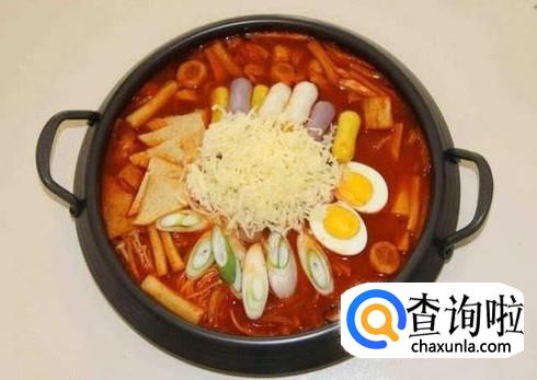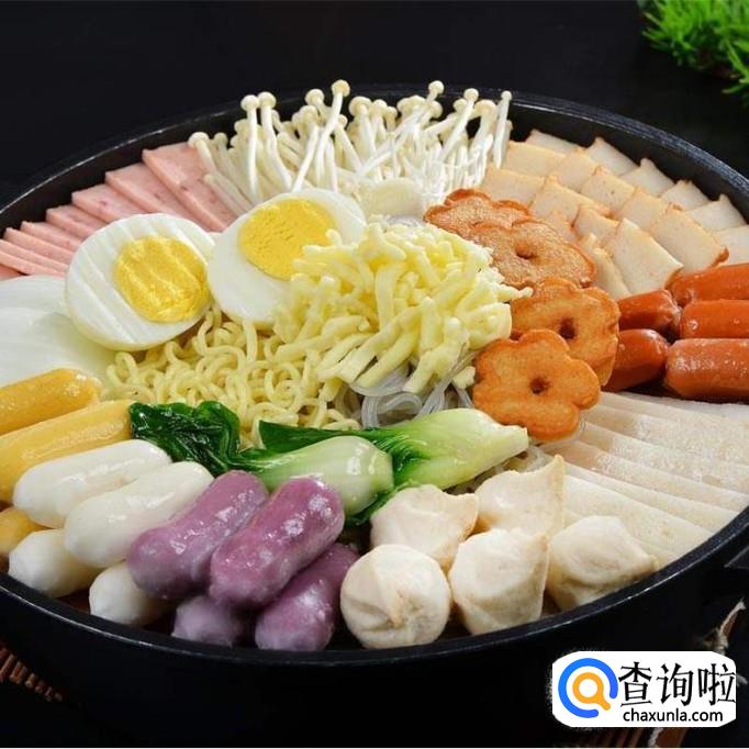 韩式辣酱,面调料粉,芝士年糕,白菜,泡菜,奶酪,一系列配菜。