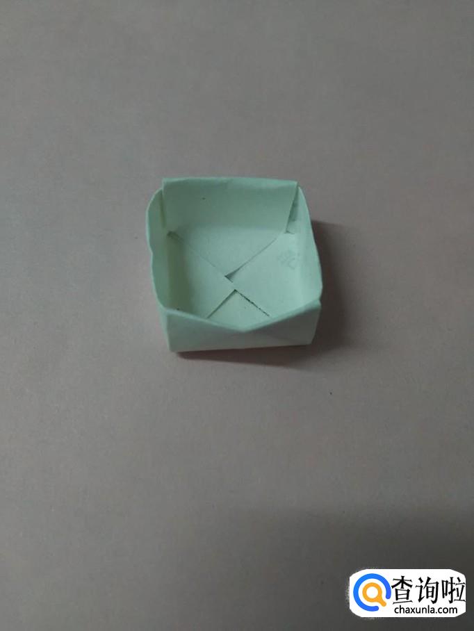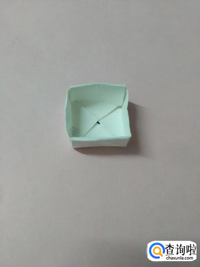 下方的角也按同样的方法折进去,方形纸盒就折好了。