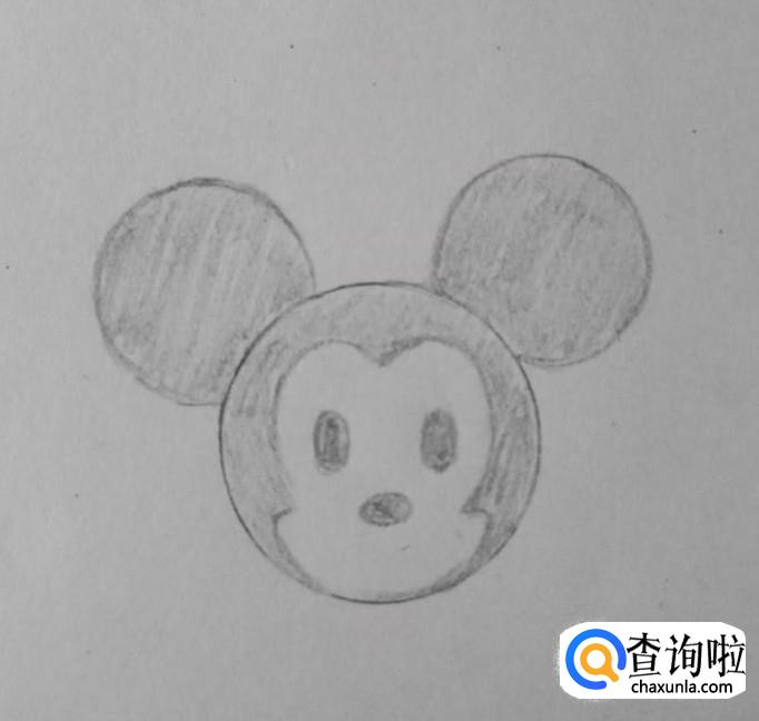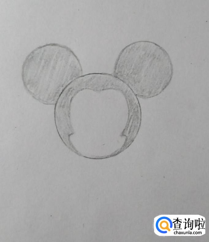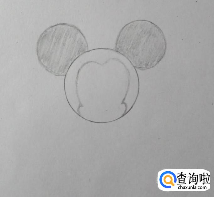 接着在头内部描绘好米奇脸的形状,如图所示。