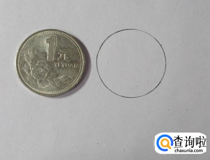 首先需要一枚硬币,画出米奇的头。