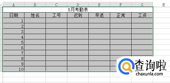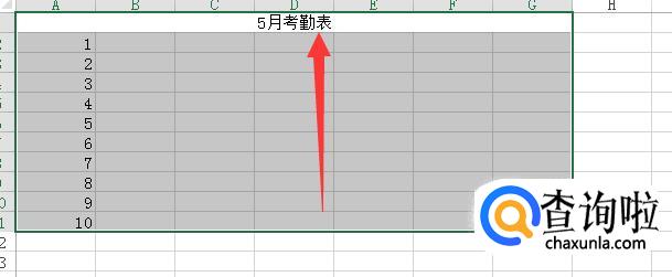 我们给表格添加一个标题,如:5月考勤表。