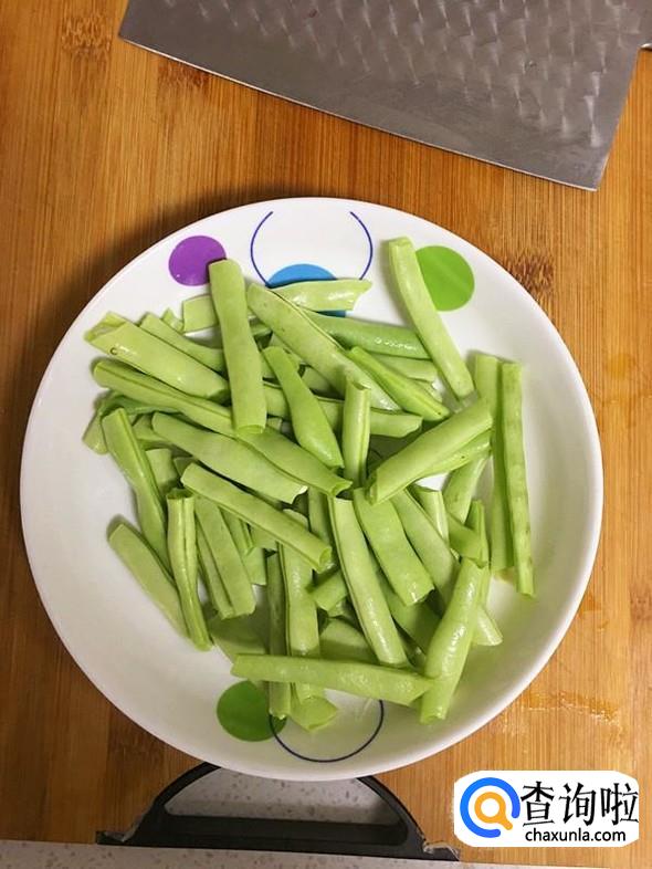 豆角掐去两头,摘洗干净,沥干水分放入盘中待用。