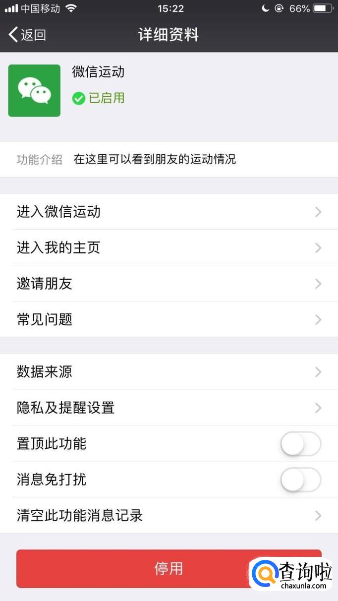 首先点击聊天界面中的微信运动,如下图所示。