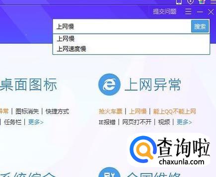然后在屏幕上方的搜索栏中输入上网慢并点击回车键,如下图所示。