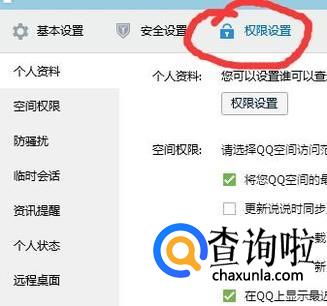 选择“设置”,进入后,选择“权限设置”,如图所示。