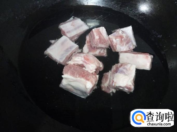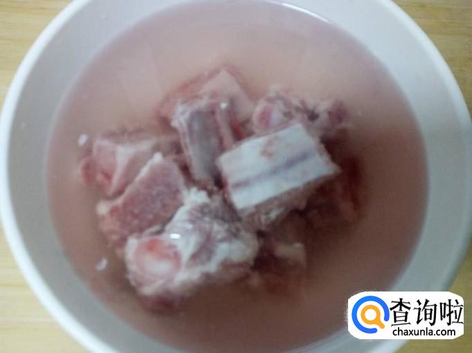 排骨剁成块,放入水中浸泡,去除血水。然后用水清洗干净,控干水分。