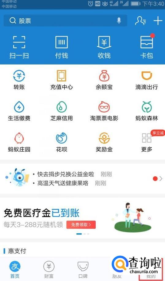 进入支付宝之后,我们点击右下角我的;
