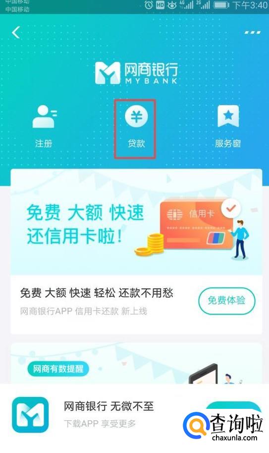进入网商银行之后,我们可以看到可以贷款,我们点击它;