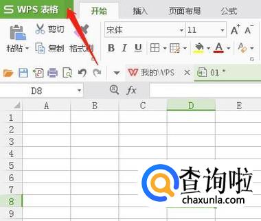 点击一个空白的单元格后,点击上方的“WPS表格”旁边的三角形。