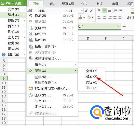 在弹出的新菜单中点击“清除”,接着在弹出的新菜单中点击“格式”。将多余的格式清除WPS运行会快一些。