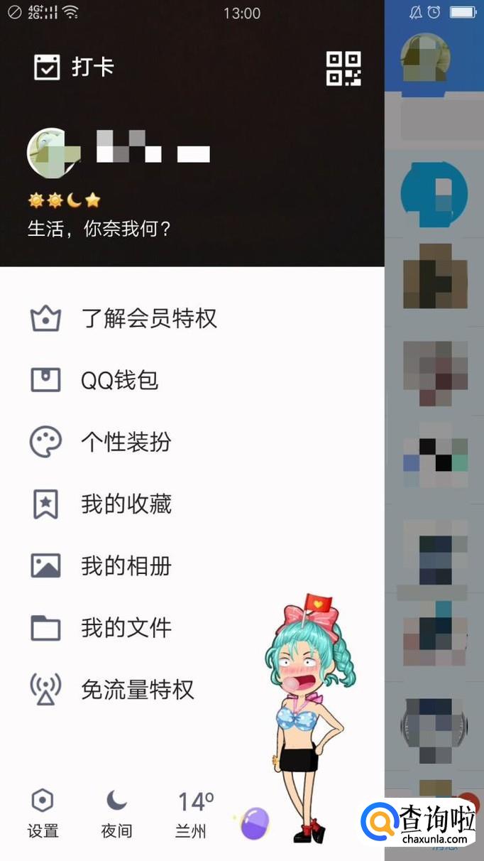 打开手机qq将屏幕向左滑动,这样才能看见手机设置功能