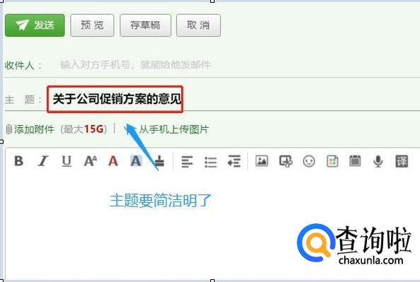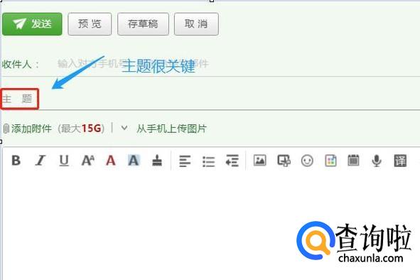 然后拟定一个主题很关键,发邮件的核心就是主题,只有确定好主题,才能让收件人以最快的速度了解到我们要表达的内容,千万不要一直以对方发来时的RE这样回复,当然也要分具体情况...