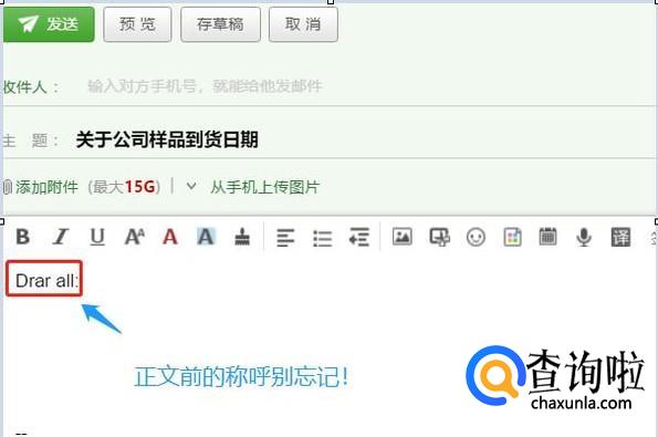 正文的称呼很重要!有些人比较马虎,总是在编写邮件正文的时候忘记对方的称呼,当然如果双方已经就一件事情多次邮件往来可以省去,但是刚开始一定要写上比如:王总您好或者Dear all等称呼语;