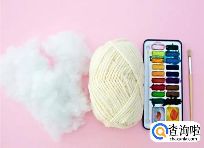 准备材料很简单:棉花团,白色或米白色毛线,彩色颜料