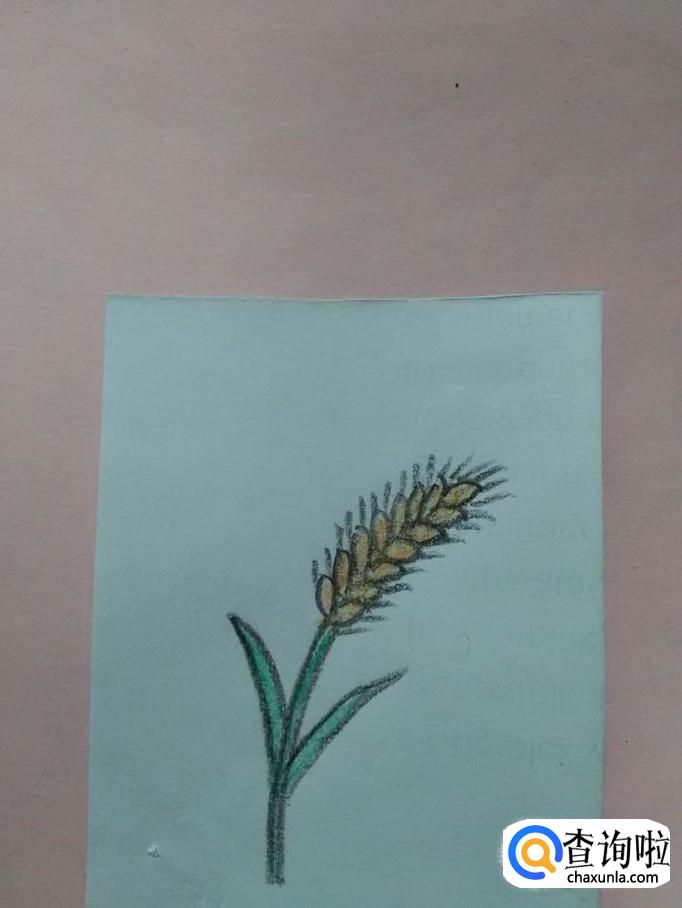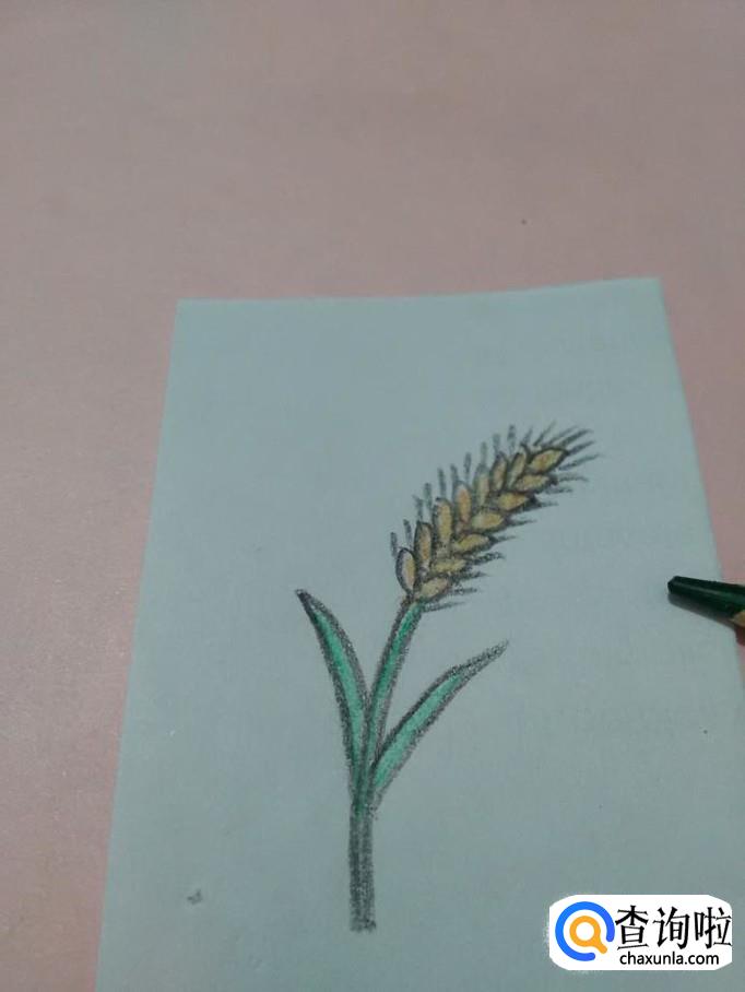 用绿色涂麦杆和叶子,麦穗就画完了。