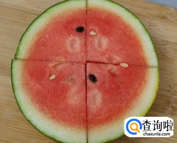 另外一种切西瓜的方法就是,先切西瓜的横切面,厚度差不多在三厘米左右,此时需要注意的是直接切成四份,呈现出十字的样式。