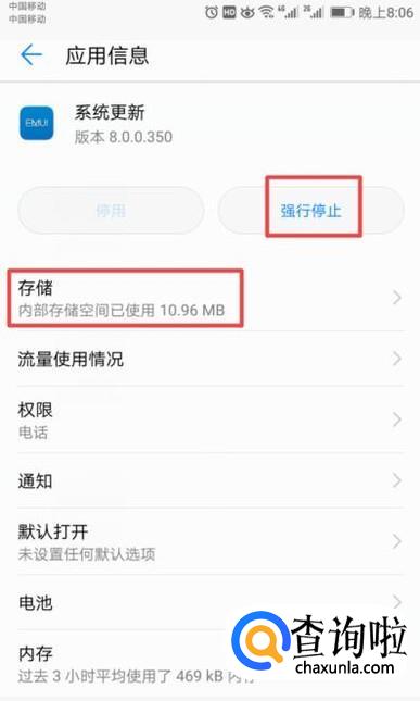 弹出的界面,我们点击强制停止,之后我们点击存储;