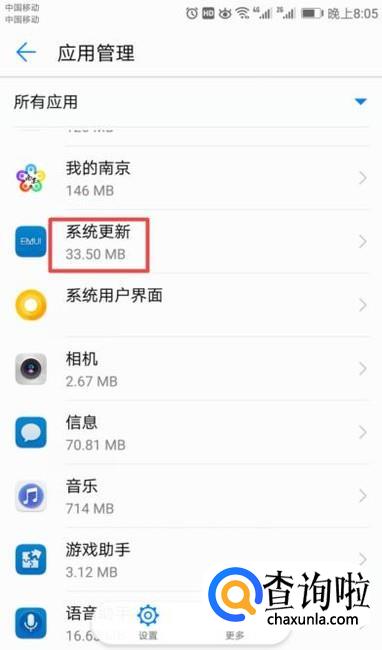 弹出的界面,我们对界面进行下滑,找到系统更新;