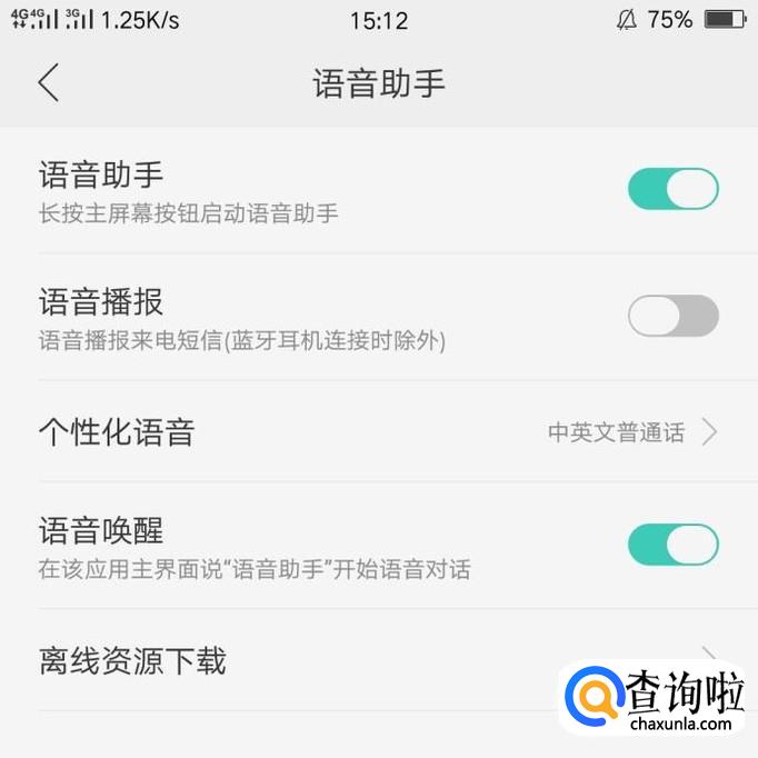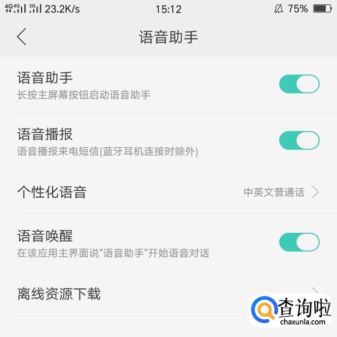 在设置中找到“语音助手”,在语音助手中就有来电语音播报的设置。