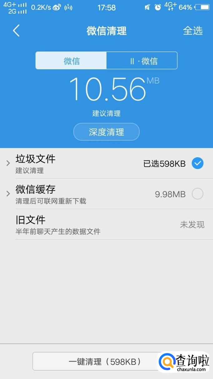 紧接着系统会自动扫描一些可清除的垃圾,我们点击微信清理。