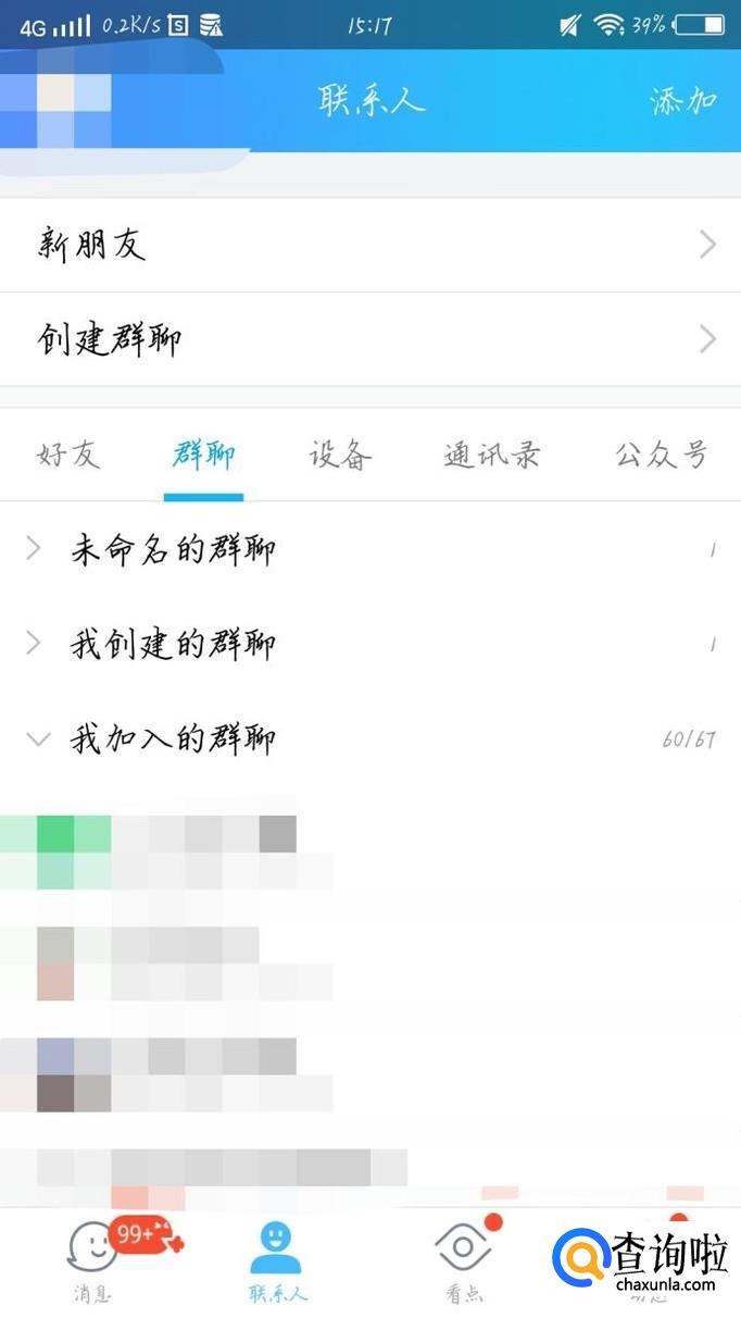 点击下方的“联系人”选项,如图1箭头所示。会出现一个新的界面,点击“群聊”选项,如图2箭头所示。
