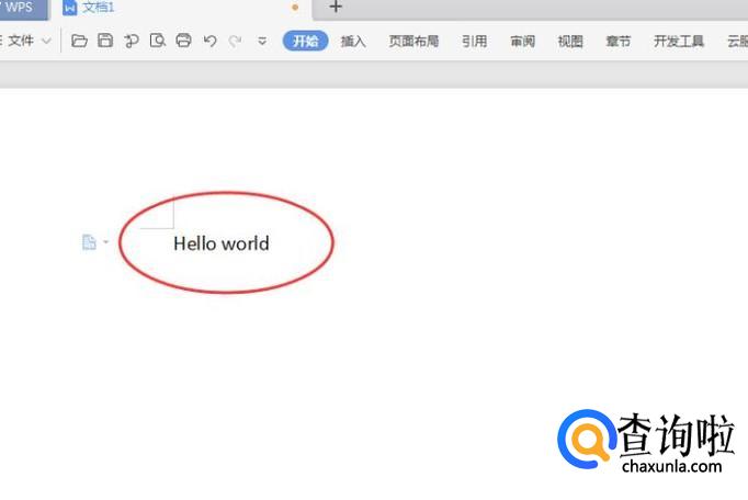 然后在空白文档中输入文字,比如hello world ,如下图所示: