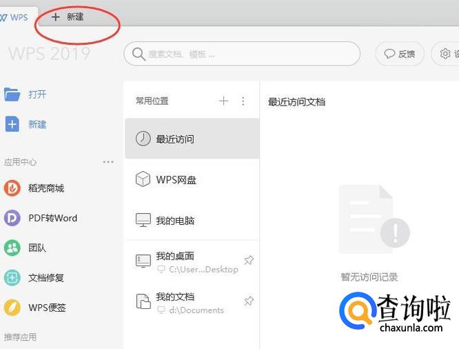 然后点击推荐模板中的【新建空白文档】,如下图所示: