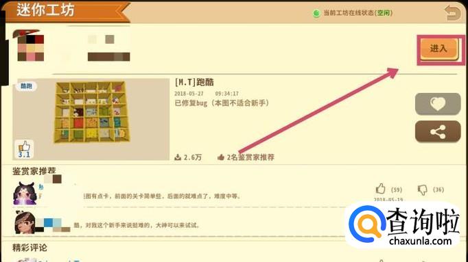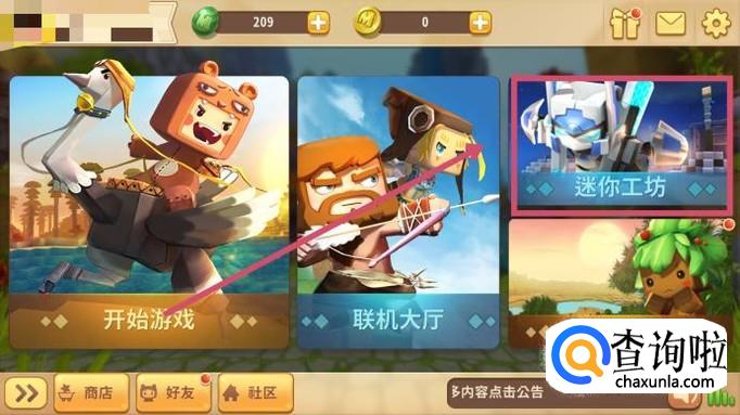 打开游戏后,在界面的右上角可以找到“迷你工坊”,里面有大量的地图可供我们下载使用。