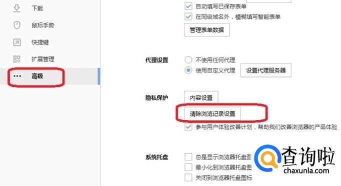 可以看到,在右侧“隐私保护”内容下有一个“清除浏览记录设置”按钮,点击一下。