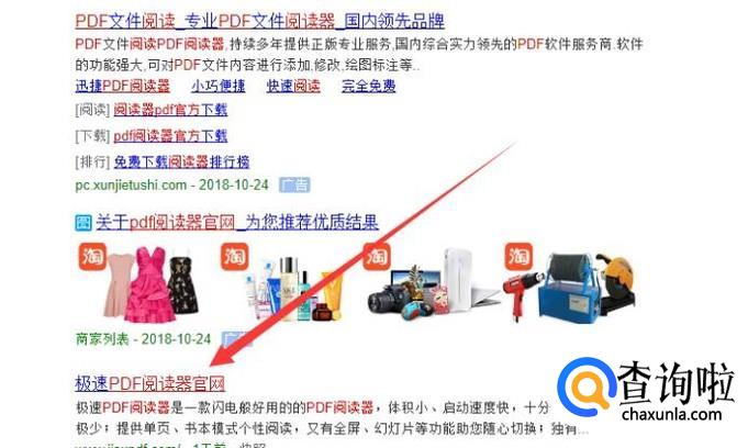 进入之后,搜索“PDF阅读器官网”,点击并进入,如图所示。