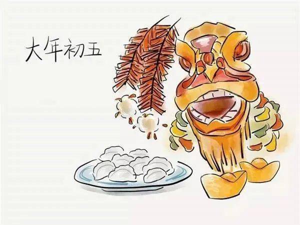 大年初五这天,民间通行的食俗是吃饺子,俗称“捏小人嘴”。因为包饺子时,要用手一下挨一下地沿着饺子边捏。据说,这样可以规避周围谗言。此外,妇女们在这天还要找出几件旧衣服来拆拆,谓之“拆小人”。这样可以免霉运。