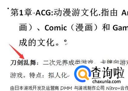 回到文档界面,找到想要添加成小标题的文字,比如将刀剑乱舞设置成小标题,选中刀剑乱舞,然后在右上方的标题栏里找到刚刚设置好的标题格式,点击标题1,然后你就会发现刀剑乱舞设置成了你想要的小标题,这样标题就添加好啦。