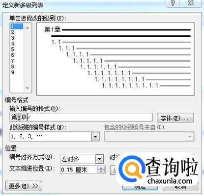 在弹出的多级列表设置界面找到“输入编号的格式”,然后在下方的输入框里输入你想要设置的标题格式,比如说第1章。