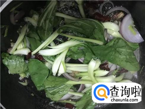加入蔬菜。小编比较喜欢吃小青菜,因此在这里放入适量的青菜来炒,味道也会更好,如果不喜欢吃炒的青菜,可以放到清汤中煮,也是可以的,能补充一定的营养,这是非常棒的。