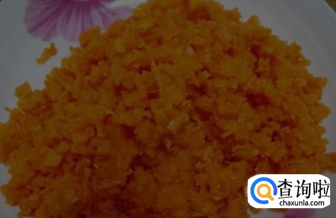 新鲜的胡萝卜用刀刮去其外皮,用水清洗干净,然后将其剁成末状,装盘备用