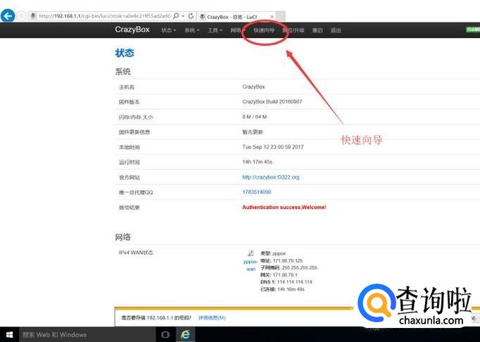 接着点击“快速向导”进行宽带账号登陆