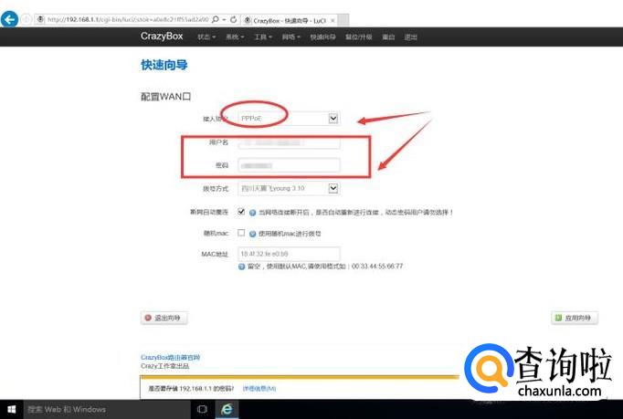 选择如图所示的模式(此模式为破解版的路由器专有的,也是与普通路由器的不同之处)并输入自己的账号和密码