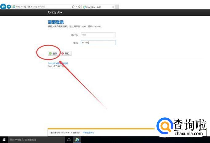 然后我们就进入了路由器的管理员登陆界面,在这里输入用户名和密码(一般是root和admin),最后点击“登录”进入路由器管理端