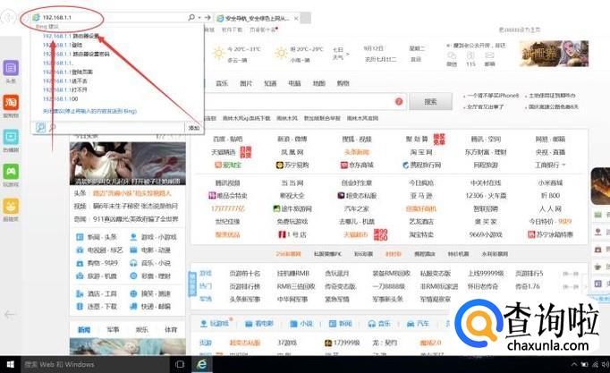 在浏览器的地址栏输入192.168.1.1,回车
