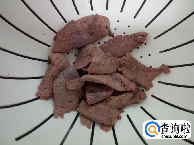 猪肝用水汆一下,水开后入锅立即捞出,用水冲洗干净(血水和沫子),沥干水分。