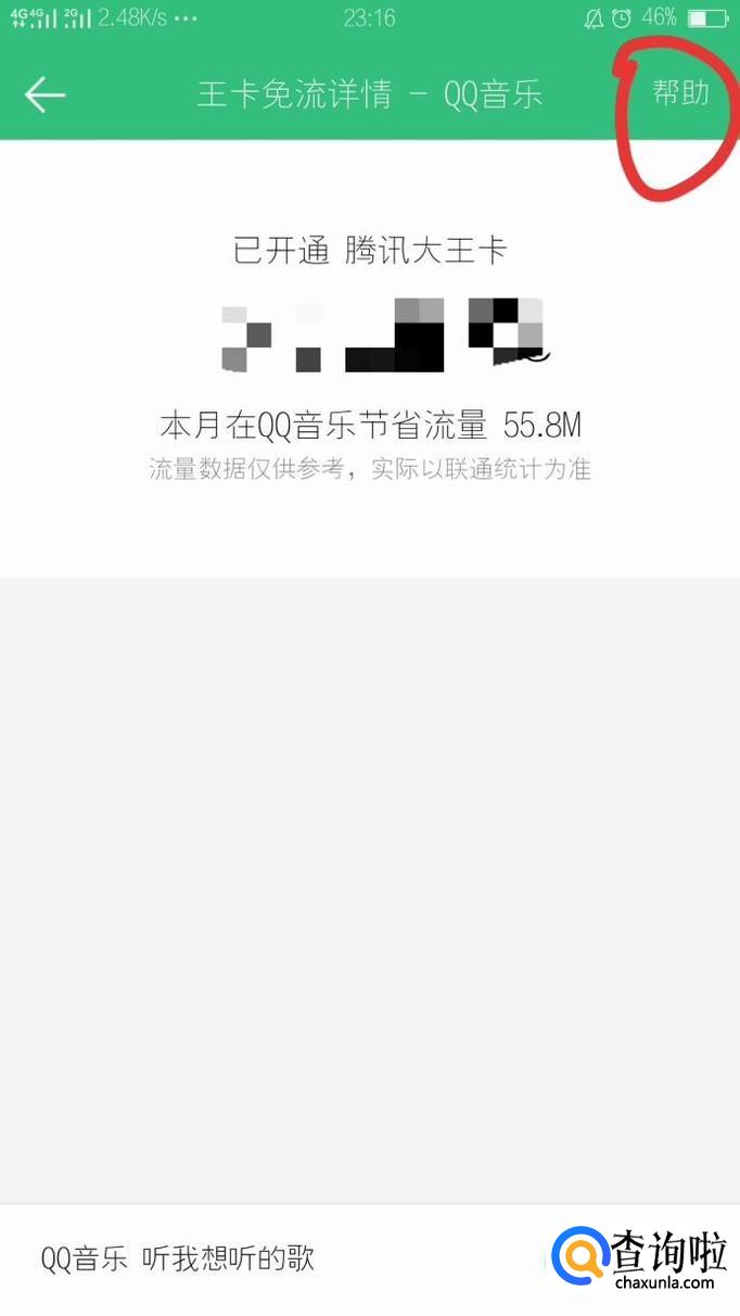 在王卡免流详情中,找到帮助,点击进去。