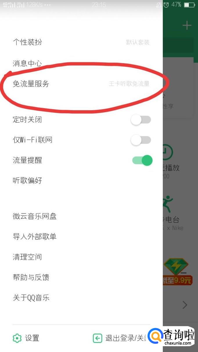 点击个人设置,找到免流量服务,进行下一个步骤。