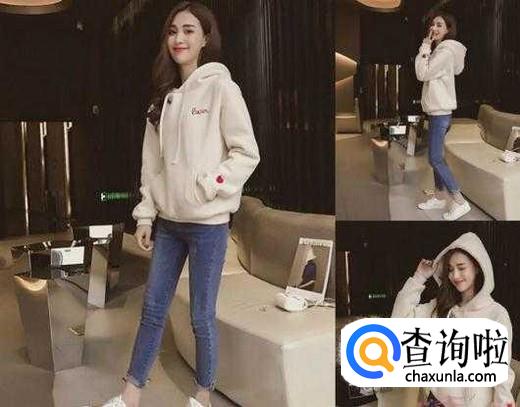 女生卫衣配牛仔裤。这种搭配也很常见,看起来非常休闲,喜欢休闲风的美眉可以尝试一下这种搭配。