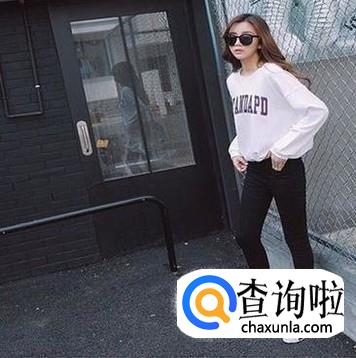 女生卫衣配黑色紧身裤。这样的搭配非常常见,黑色紧身裤特别显瘦,这种搭配有一种很前卫的感觉。