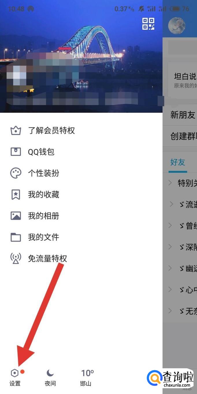 进入手机QQ,找到“设置”,点击并进入,如图所示。