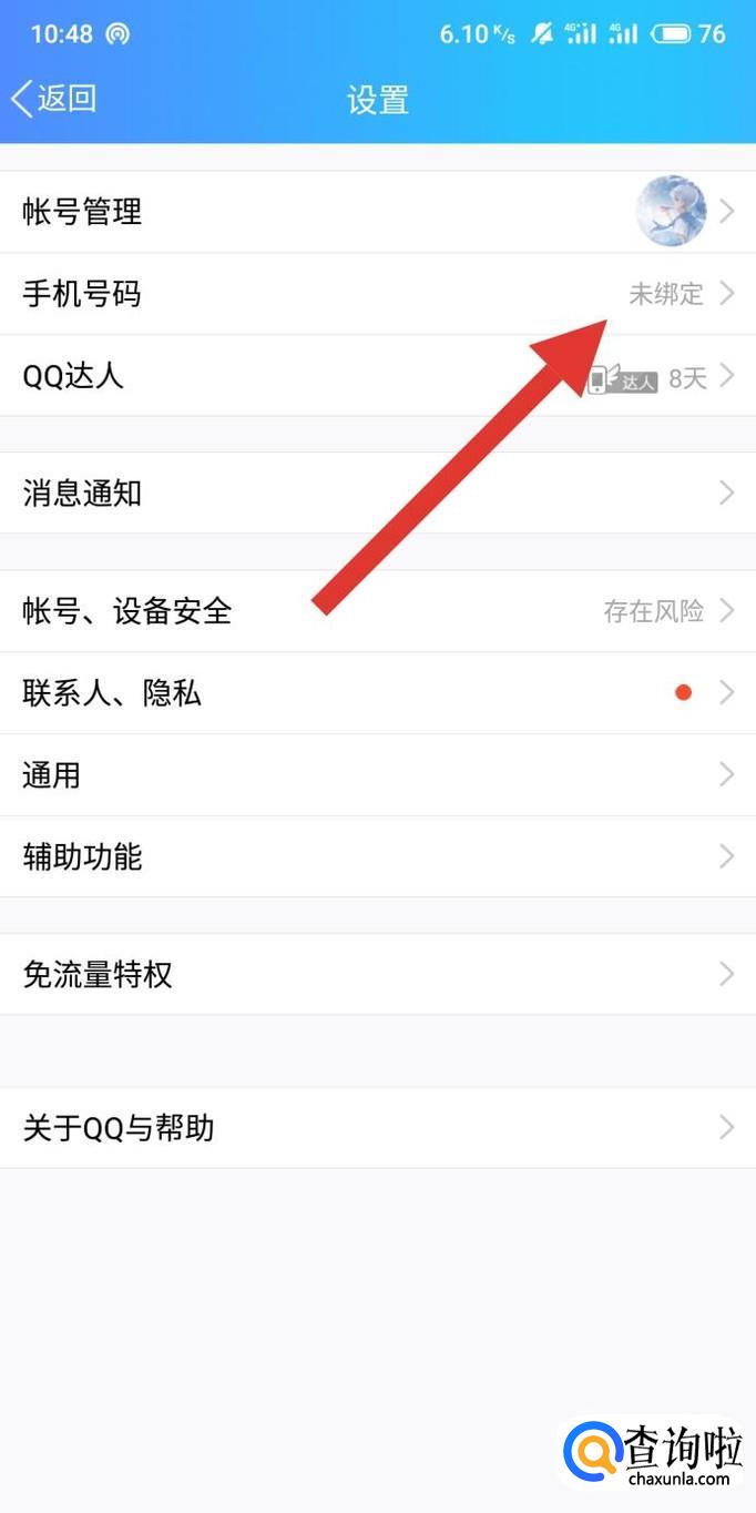 进入之后,点击“手机号码”位置的“未绑定”,进入下一页面。
