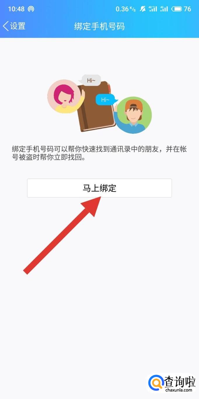 进入之后,点击“马上绑定”,如图所示。