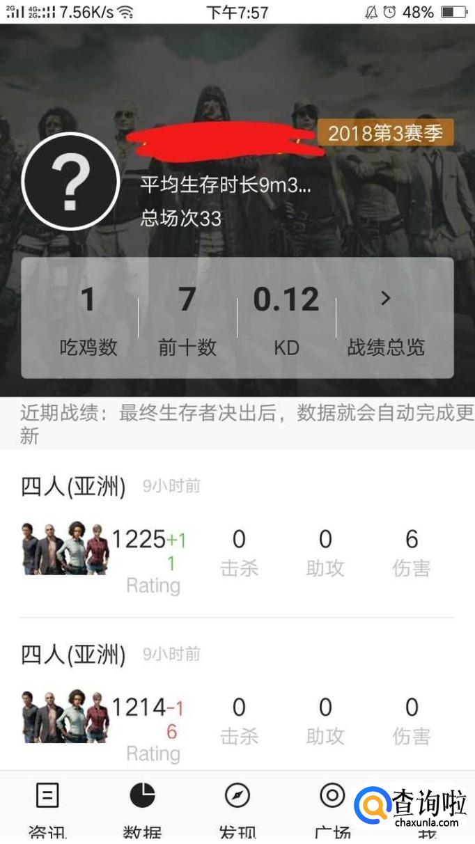 最后你就可以查看自己吃鸡的战绩了。(ps:忽略小编的战绩啊)