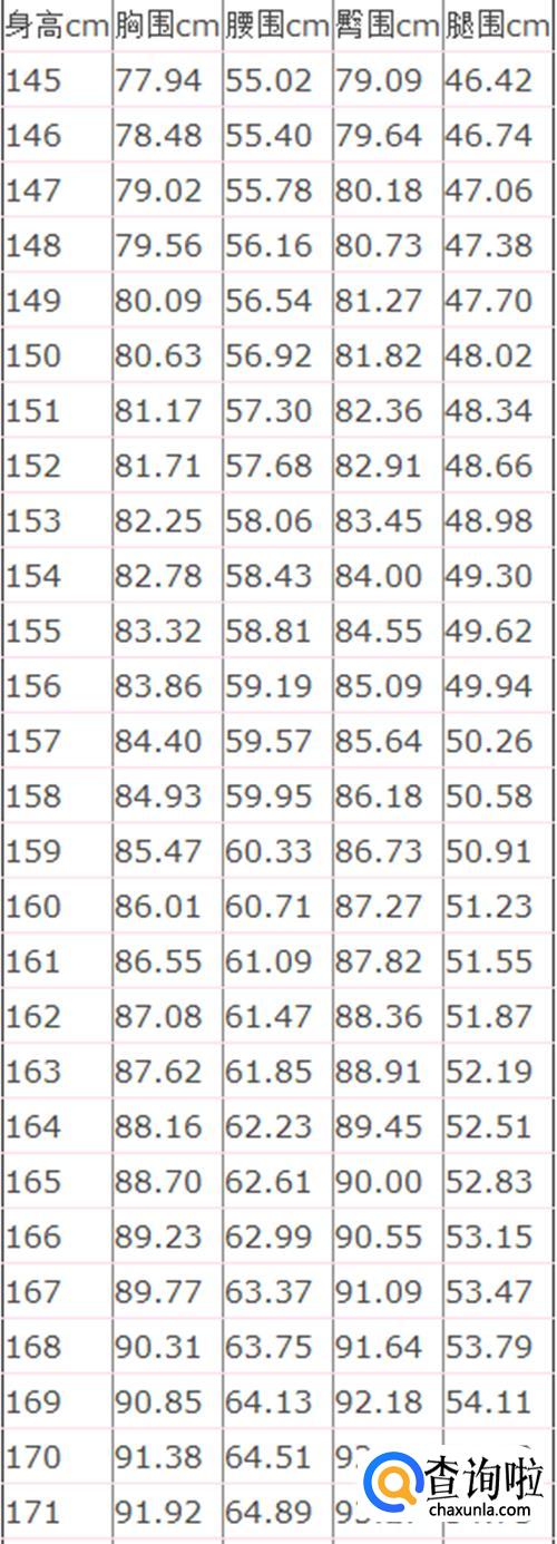 下面是身高对应标准三围的参考。如图。